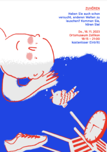 Los geht’s mit den Erzählcafé-Tagen 2023 bereits am Donnerstag, 16. November 2023, 18.15 Uhr: Das Netzwerk Erzählcafé, Zuhören Schweiz, Pro Futuris und das Ortsmuseum Zollikon laden zu einem interaktiven Zuhörabend im Ortsmuseum Zollikon ein. Dort findet gleichzeitig die Sonderausstellung «A mile in my shoes – Zuhören als Akt der Empathie» statt. Die Ausstellung entstand mit dem Empathy Museum London, Empathie Stadt Zürich und dem Berner Generationenhaus und kann im Rahmen der kostenlosen Veranstaltung besichtigt werden (zum Flyer). Kommen Sie und gestalten Sie mit uns einen Moment des gegenseitigen Zuhörens!